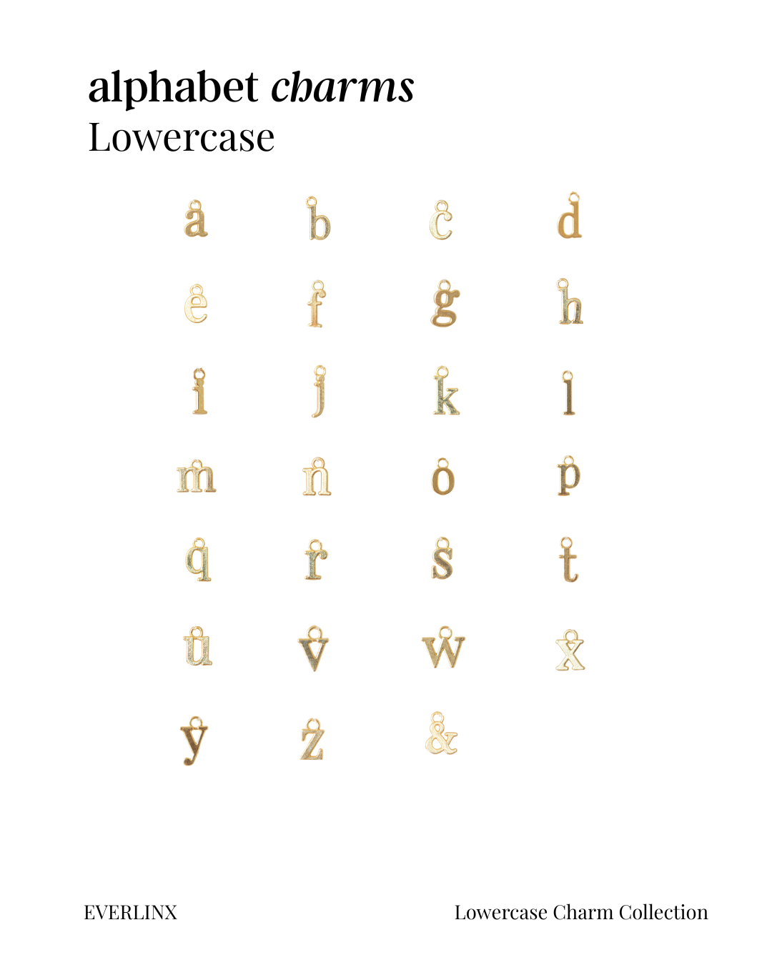 Crafted from .925 sterling silver with a refined gold plating, these lowercase alphabet dangle charms measures 4.85mm, offering a subtle yet elegant accent. Designed for versatility, it pairs seamlessly with jump rings of 22 gauge and thinner, allowing easy attachment to your favorite jewelry pieces. Sold individually, this charm is ideal for personalized creations or delicate additions to you or your customers collection.