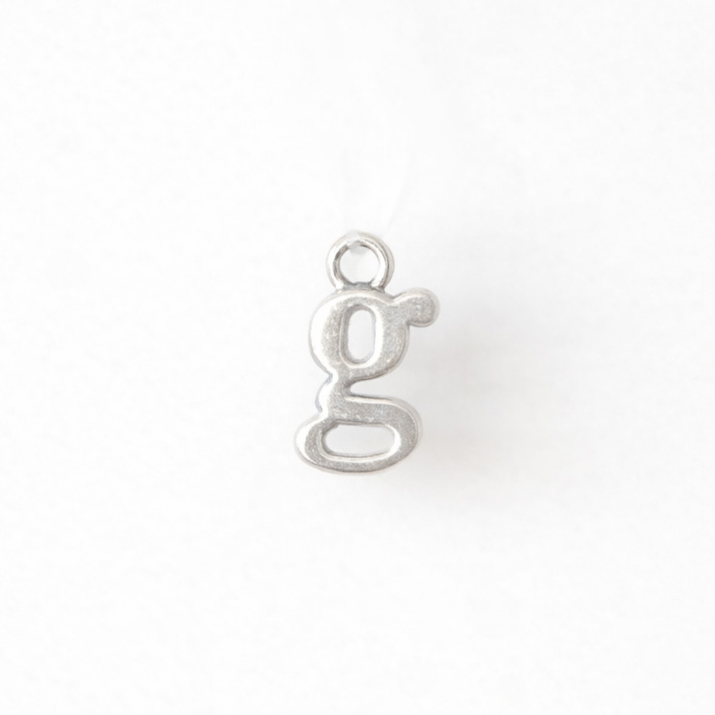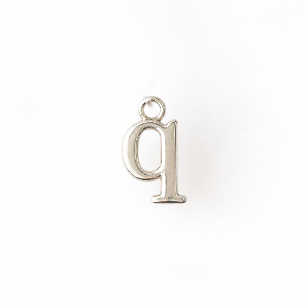 Crafted from .925 sterling silver, these lowercase alphabet dangle charms measure 4.85mm, offering a subtle yet elegant accent. Designed for versatility, it pairs seamlessly with jump rings of 22 gauge and thinner, allowing easy attachment to your favorite jewelry pieces. Sold individually, or in the full Alphabet including the & symbol, this charm is ideal for personalized creations or delicate additions to you or your customers collection.