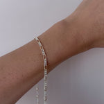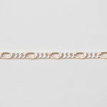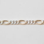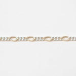 This Figaro chain combines the durability of 14/20 gold-filled metal with the classic shine of .925 sterling silver, offering a versatile mixed-metal look. Sold unfinished by the yard (3 feet per unit), it allows for custom jewelry creations tailored to your specifications. Ideal for professional use, it pairs best with jump rings of 22 gauge or thicker, ensuring secure and polished connections in your designs.