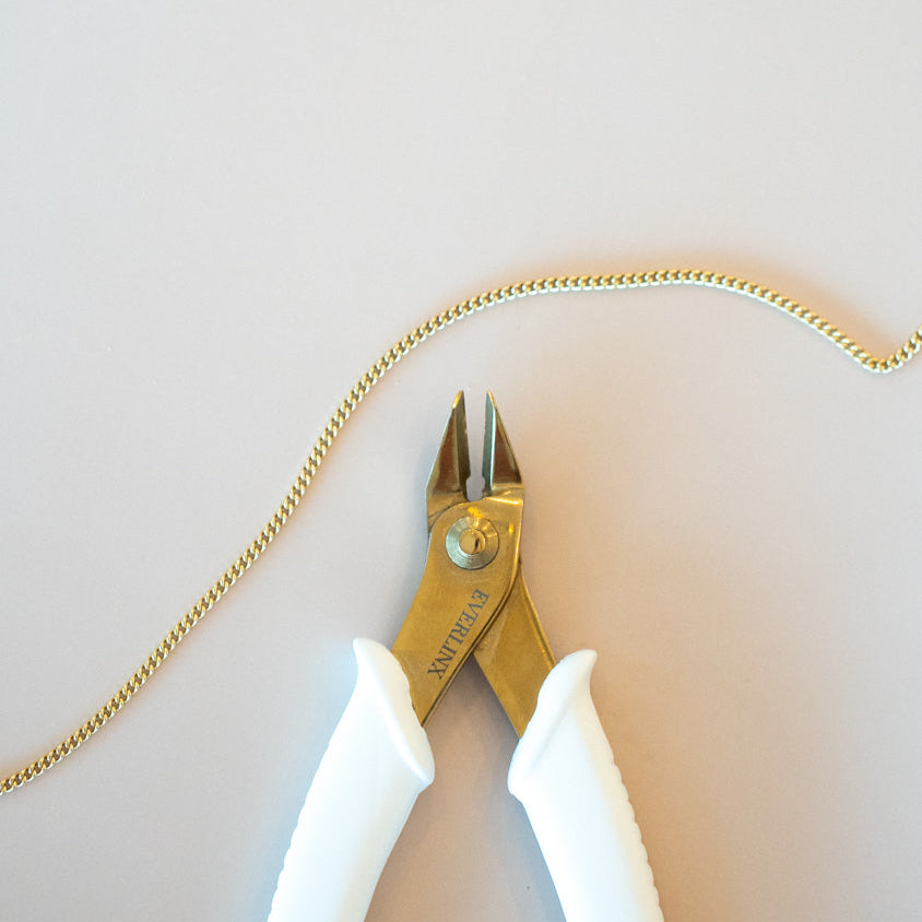 The Everlinx Precision Cutter in white and gold is crafted to deliver accurate cuts on gold, silver, stainless steel, plated, rhodium, and other metals. Ideal for detailed jewelry craftsmanship and complex permanent jewelry projects, this durable and ergonomic tool ensures professional-level precision.